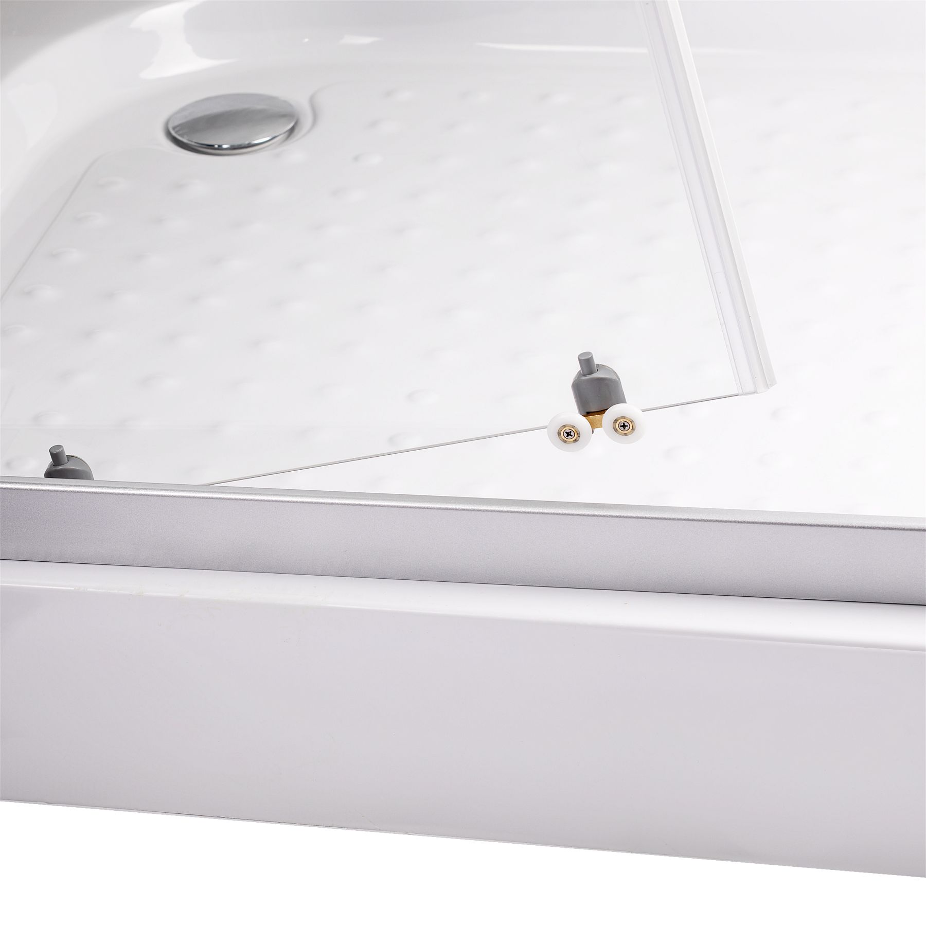Комплектация:профиль , комплект крепежных деталей , глухое стекло , стеклянная дверь , двойные ролики , ручки , соединительный элемент , поддон , сифон , переходник 32/50 мм