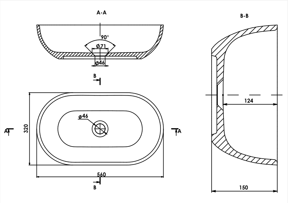 Раковина матовая накладная Amidicon Savanna 56 560х320 из литого камня