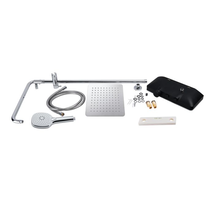 Душова система Qtap Sloup 57T105VNKCB складається з душової стійки з верхнім і ручним душем, а також змішувача. Лійка для ручного душу має 3 режими подачі води, а змішувач виконано у вигляді зручної дзеркальної полиці, на якій можна зберігати різні засоби. Виріб виготовлено з якісної латуні і міцного пластику, що дозволить продовжити термін експлуатації. Завдяки кріпильним деталям, якими комплектується виріб, встановлення не забере багато часу та не завдасть зайвого клопоту.