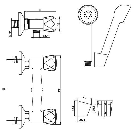Комплектація:лійка для ручного душу , змішувач , кріпильні деталі , душовий шланг