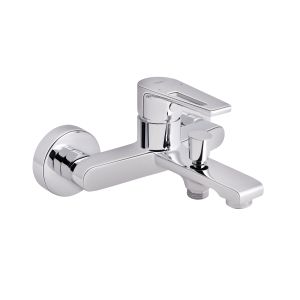 Змішувач для ванни Qtap Tern 3061102C виготовлений із міцної та зносостійкої латуні з рівномірним хромованим покриттям, завдяки якому виріб має привабливий зовнішній вигляд та більш стійкий до механічних пошкоджень. Подача води регулюється за допомогою зручного важеля, а перемикання у душовий режим - дивертором. Декоративні накладки приховають усі недоліки настінного монтажу.