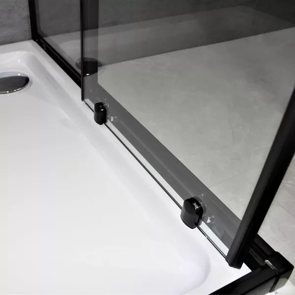 Душевая кабина Dusel EF-184B Black Matt квадратная, имеет две раздвижные двери на металлических двойных роликах в цвет профиля.