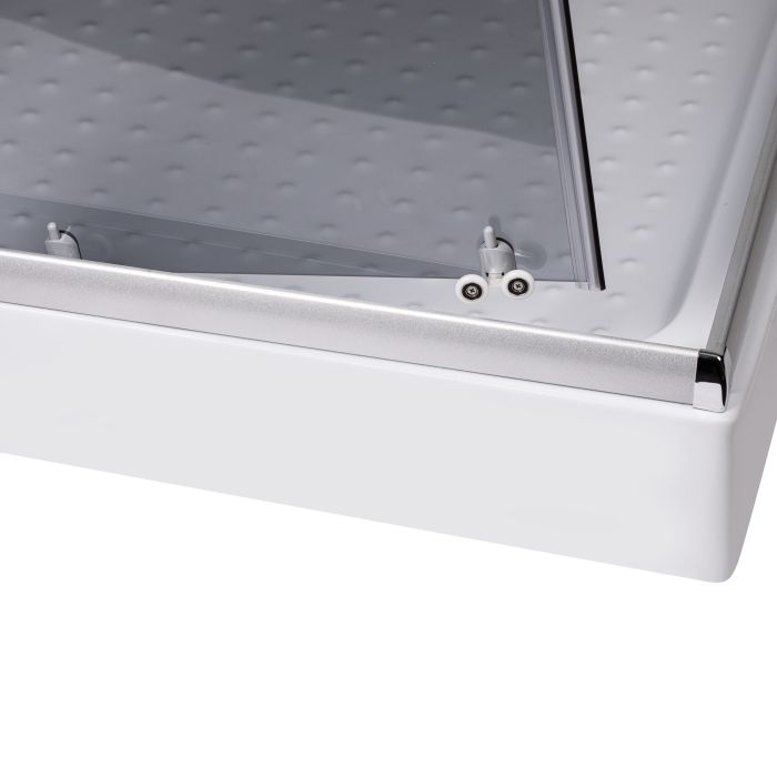 Комплектация:профиль , комплект крепежных деталей , глухое стекло , стеклянная дверь , двойные ролики , ручки , соединительный элемент , поддон , сифон , переходник 32/50 мм