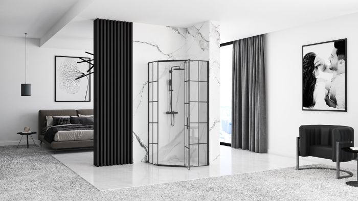 Душевая кабина Rea Hex 80x80 R/L черный + Душевой поддон 80x80