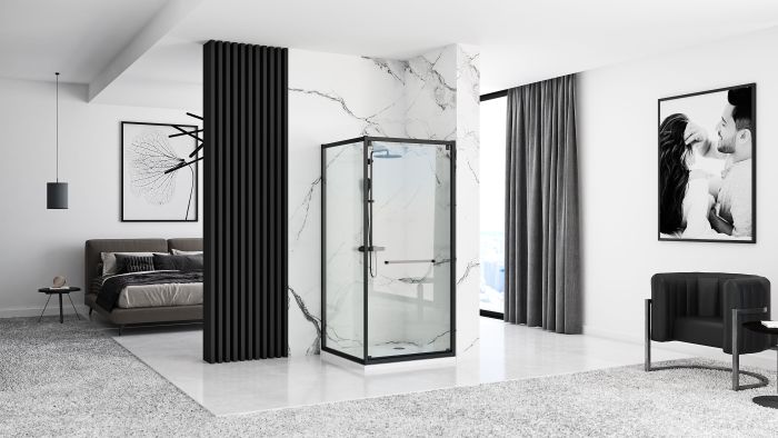 Представляем вам красивую и очень функциональную угловую душевую кабину Space IN. Это продукт, который идеально заполнит пространство вашей ванной комнаты, сохранив при этом безупречный внешний вид и эстетику интерьера. Благодаря черным элементам отделки наш продукт чрезвычайно универсален и обязательно впишется в интерьер вашей санитарной комнаты. Благодаря своей конструкции кабина Space IN позволяет устанавливать ее на душевой поддон разной высоты или прямо на пол. Душевые двери выдвигаются внутрь, что помогает в практичном использовании ванной комнаты. Они имеют защитное покрытие Easy Clean, которое облегчает поддержание чистоты душевой кабины. Благодаря особому этапу производства они долговечны и легко моются. В процессе производства наносится черный цвет, который затем дважды закаливается вместе с листом при температуре 600-800°C. Это гарантирует 100% долговечность и устойчивость к царапинам и механическим повреждениям. Это единственный метод, обеспечивающий высочайшее качество и долговечность. В нашей кабине мы использовали инновационную систему открывания дверей - Autoline.Модель кабины Space IN имеет эффективную раздвижную систему, которая позволяет легко открывать и закрывать дверь, основанную на четырех отдельные ролики. Двери плавно сдвигаются внутрь, что делает кабину чрезвычайно практичной, особенно в небольших ванных комнатах с ограниченным пространством. Открытая дверь не выходит за пределы кабины, облегчая пользование самой ванной комнатой, не уменьшая пространство внутри кабины. Система открывания разработана таким образом, чтобы она работала идеально безотказно в течение многих лет использования.