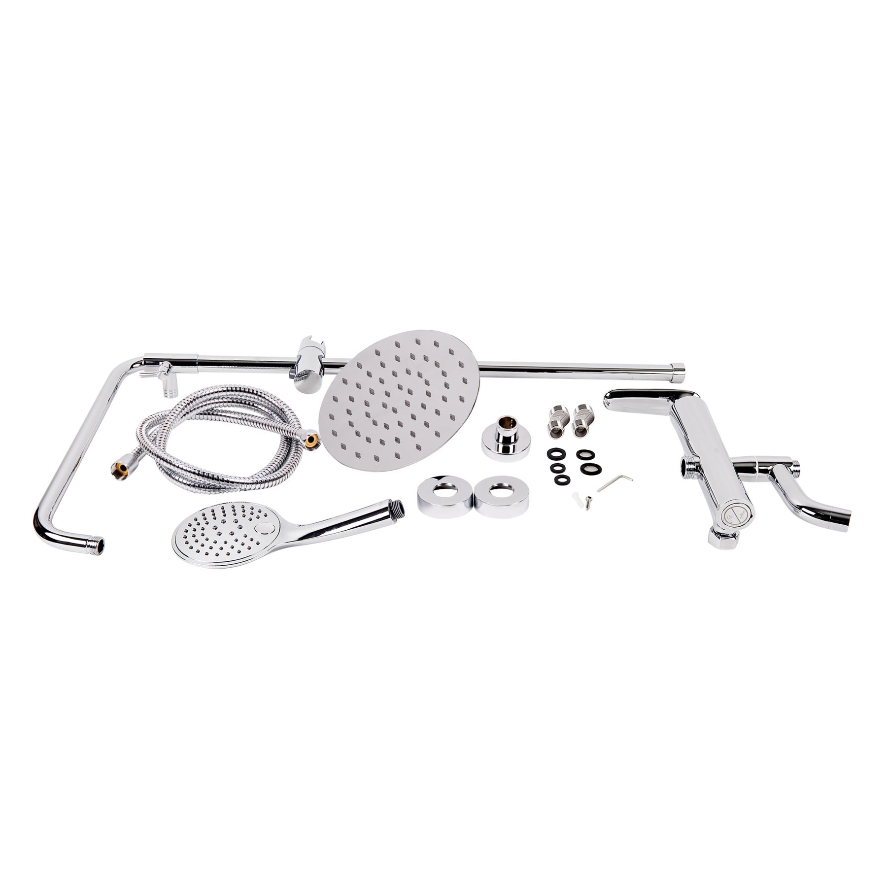 Комплектация:Смеситель, кронштейн для верхнего душа, лейка для верхнего душа, кронштейн для ручного душа, лейка для ручного душа, душевой шланг, душевая стойка, крепежные детали.