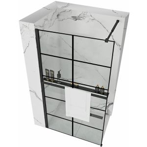 Душевая стенка-перегородка Rea Bler-1 90 черный + полка Evo