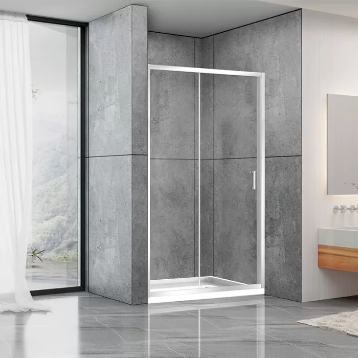 Душевые двери Dusel FA-512 имеют одну раздвижную дверь на металлических двойных роликах и одну глухую стенку. Установить раздвижную часть можно как слева, так и справа.