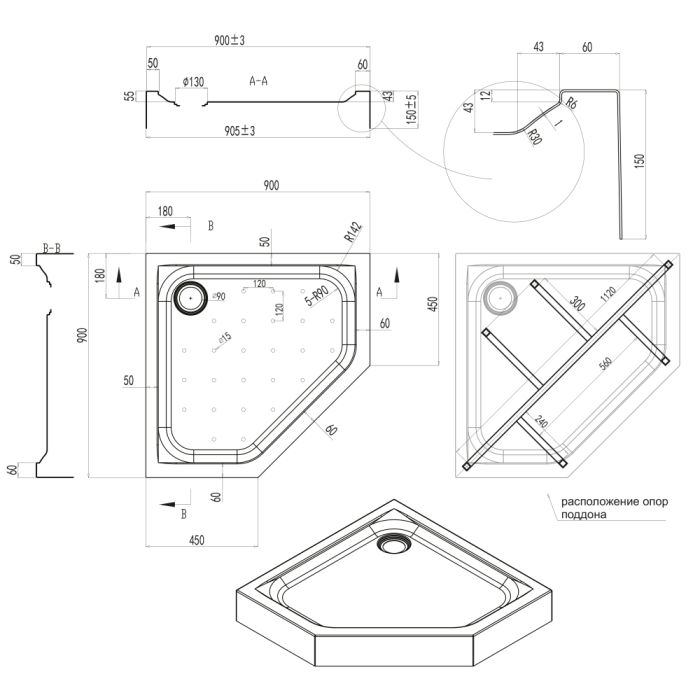 Комплектация:поддон , сифон с выпуском 40/50мм