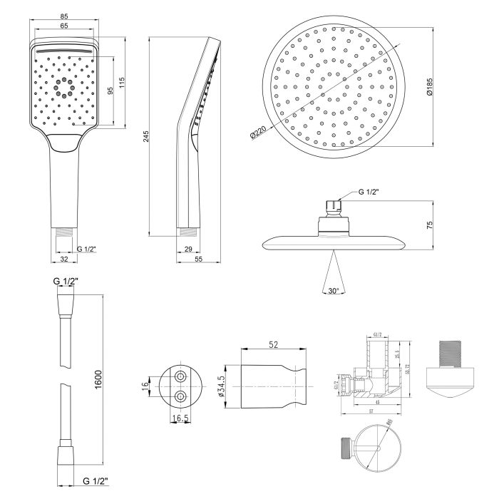 Комплектация:Смеситель скрытого монтажа, душевая стойка, кронштейн для верхнего душа, воронка для верхнего душа, кронштейн для ручного душа, воронка для ручного душа, душевой шланг, штанговое подключение, крепежные детали.