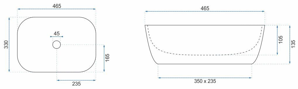 Размер раковины, мм:465х330