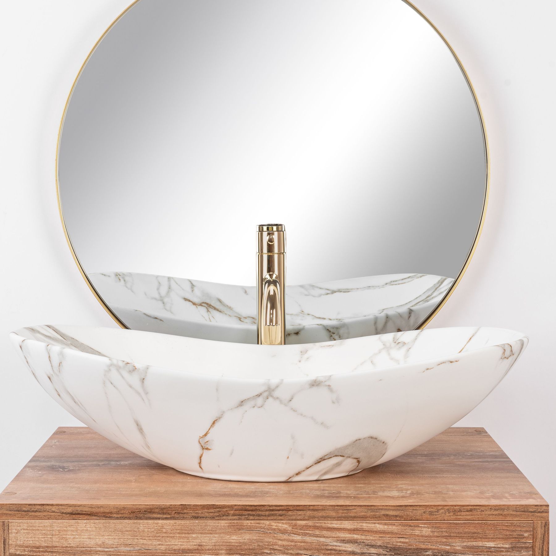 Раковина накладная Rea Royal Lava 605х360х160 белый, мрамор REA-U8598