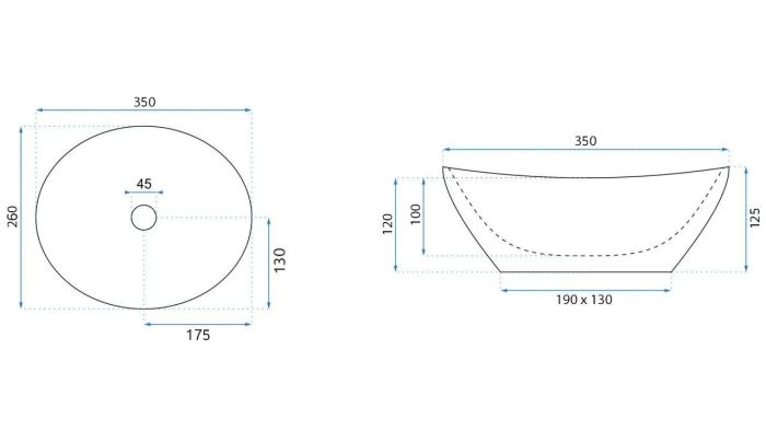 Размер раковины, мм:350х260