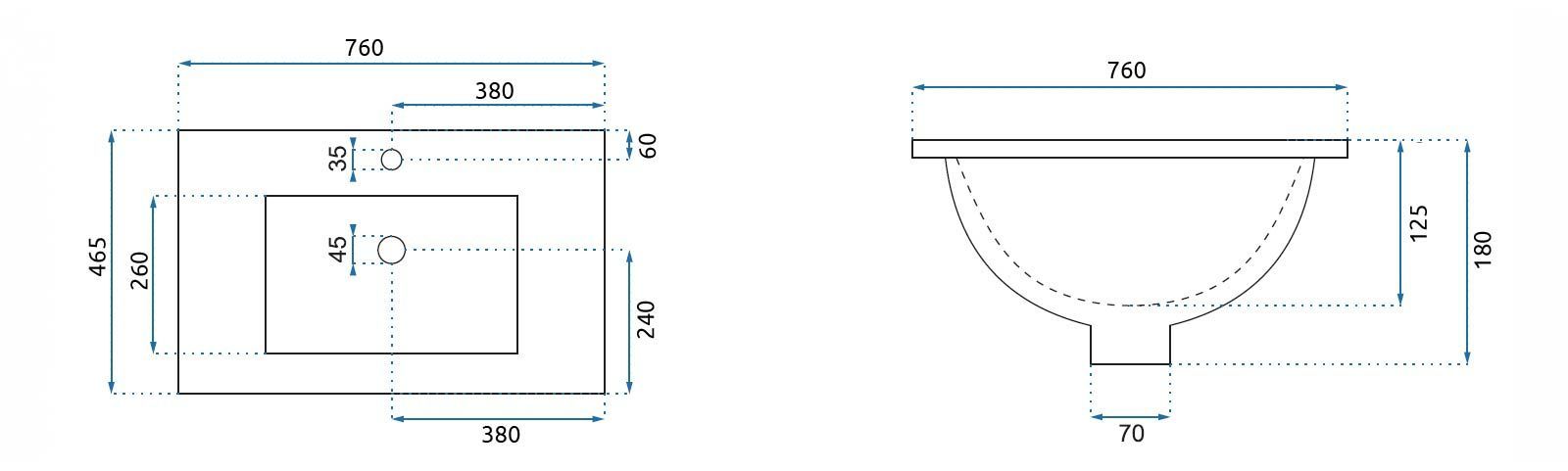 Размер раковины, мм:760х465