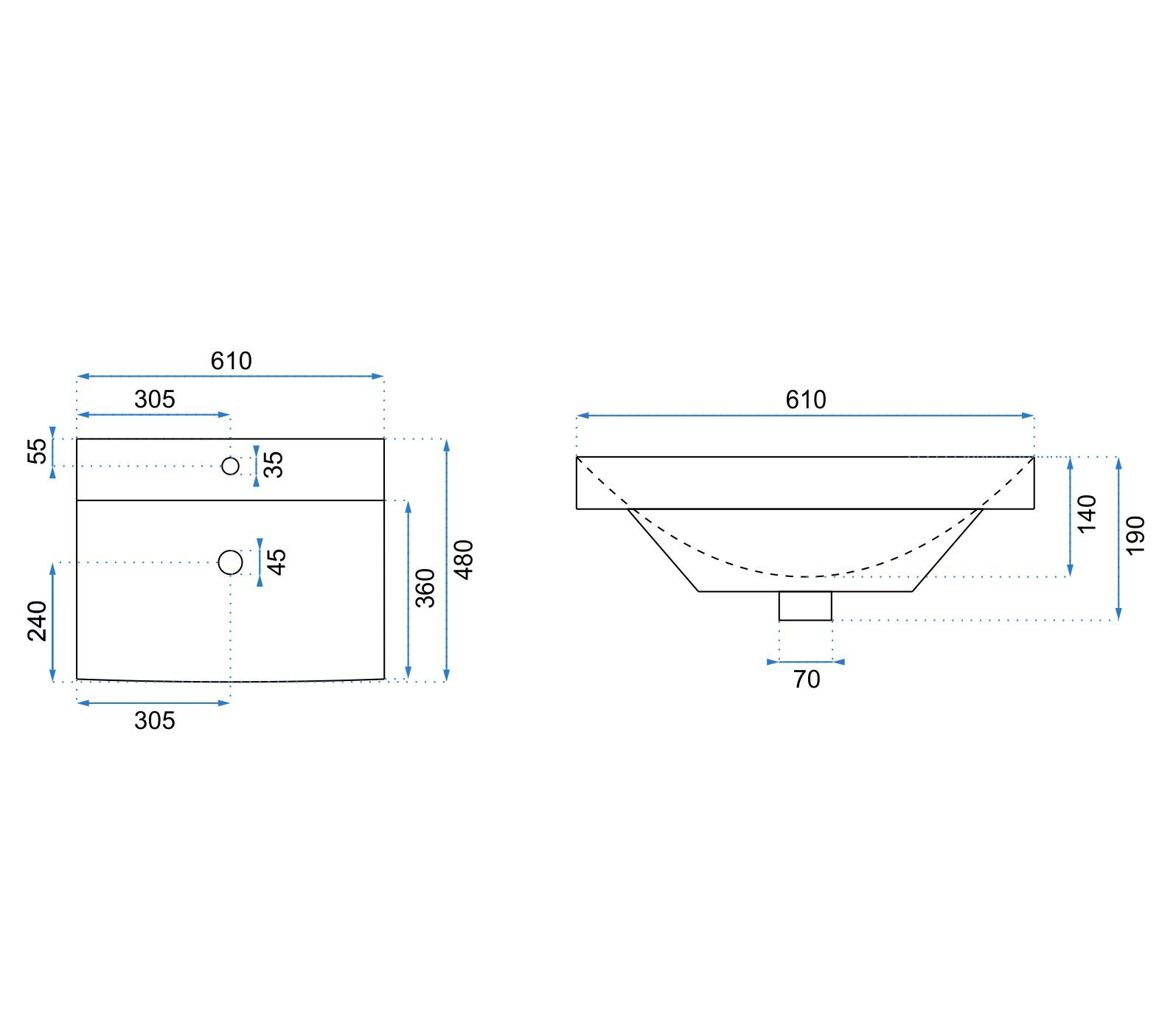 Размер раковины, мм:610х480