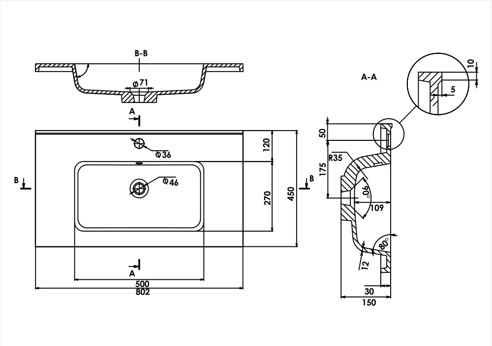 Раковина глянцевая врезная Amidicon Rodeo 80 800х450 из литого камня