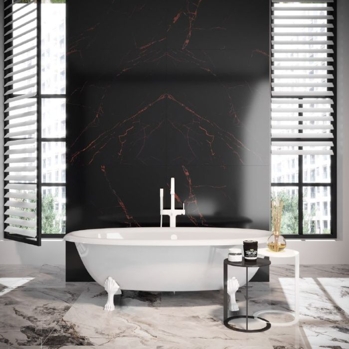 Наравне с глянцевой поверхностью, в моду вошла матовая. Она стильно смотрится и придает интерьеру уникальную элегантность. Ванны с неблестящим покрытием очаровательны, чудесно смешиваются с аналогичной плиткой на стенках ванной комнаты.