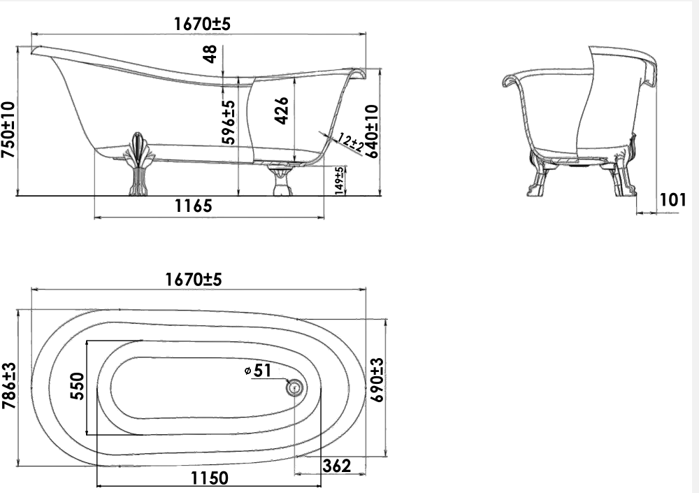 Размер ванны, мм:786х1670