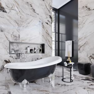 Ванна отдельностоящая черная Symphony из литого камня с серебряными ножками от TM Amidicon.