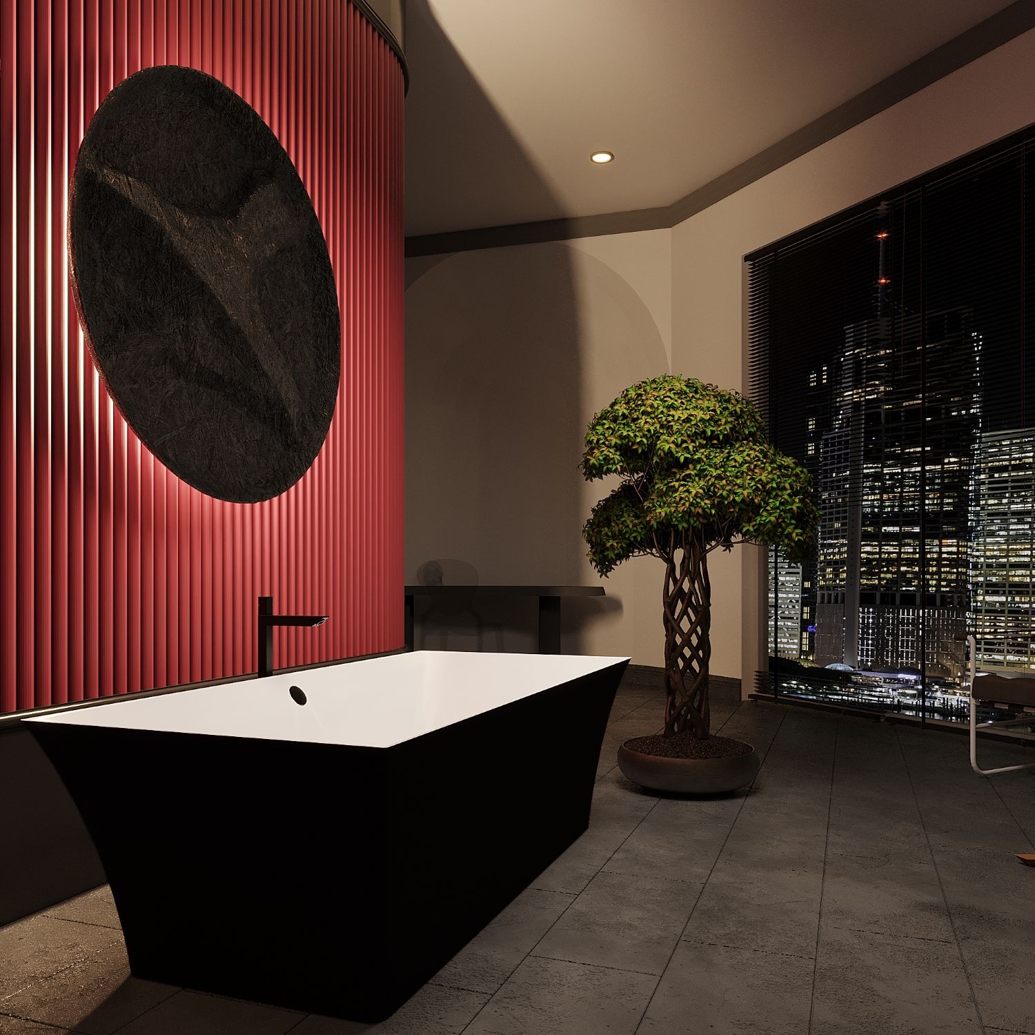 Ванна отдельностоящая черная Sparta из литого камня от TM Amidicon.