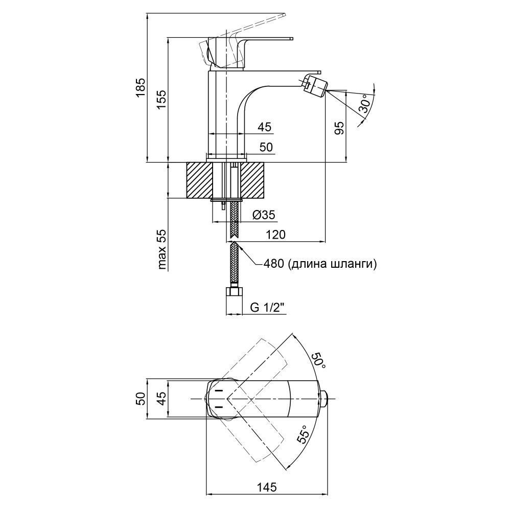 Высота смесителя, мм:155
