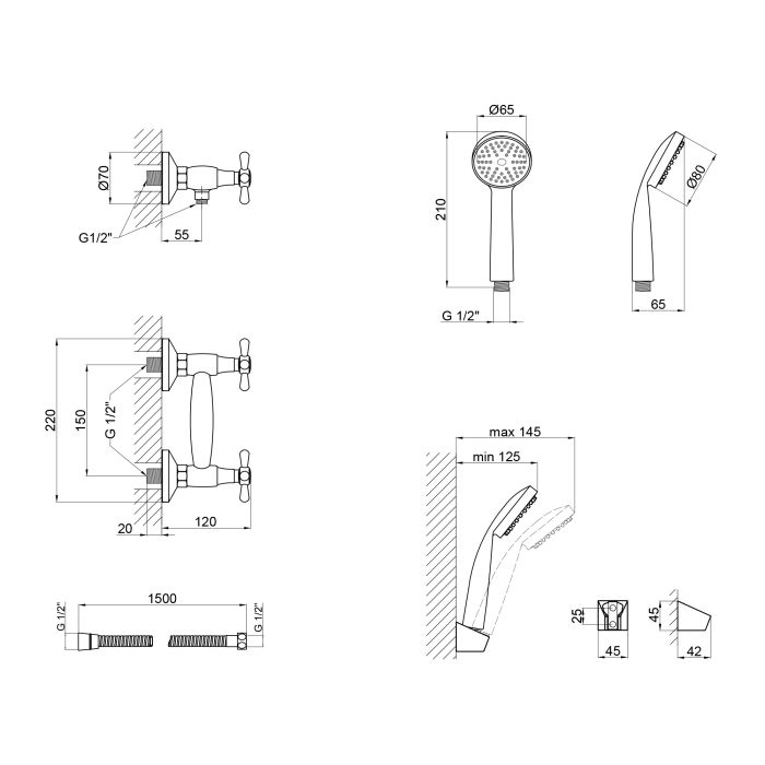 Смеситель для душа Lidz (CRM) Dominox 15 363 выполнен из латуни с глянцевой блестящей поверхностью. Он и держатель ручного душа монтируются на стену. Декоративные розетки скроют погрешности установки на отделке ванной комнаты. Подача воды осуществляется благодаря повороту вентилей в нужное положение.