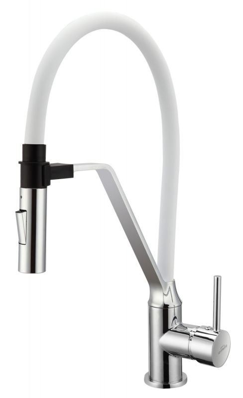 Смеситель для кухни с гибким изливом Invena Magnetic белый, хром BZ-30-L02