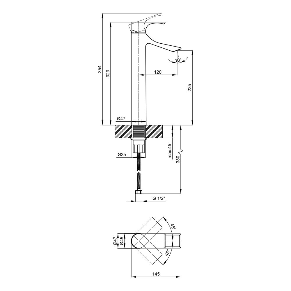 Высота смесителя, мм:323
